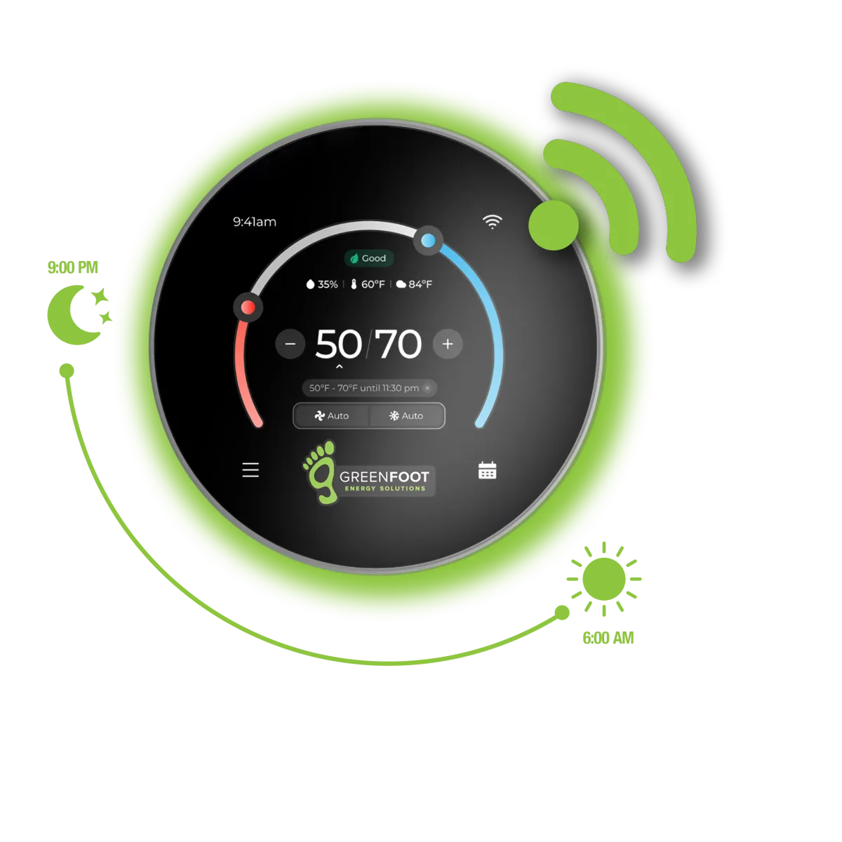 PEAK Series smart Wi-Fi thermostat display showing temperature controls